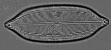 This taxon is characterized by apiculate ends, a broader valve, and has pointy ends. It sometimes has faint lines extending from the striae in the central area of the diatom. These lines are seen in other taxon of Neidium as well as this one (Patrick and Reimer 1966).