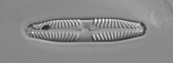 Valve linear with somewhat rostrate, wedge-shaped ends, or liear-elliptical with rounded ends. Axial area narrow. Central area a broad, transverse fascia. Striae radiate toward the middle of the valve, strongly convergent at the ends(Patrick and Reimer 1966).