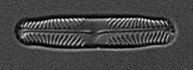 Linear, linear-elliptic with weakly convex sides, sometimes almost triundulate. Ends broadly capitate and drawn out, almost without a definite shoulder. Axial area is thin. Central area is fascia. Central striae are strongly radial, end striae slightly to distinctly convergent (Krammer 1992a).