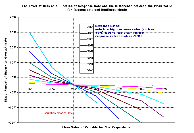 Terms: unit of analysis sample randomness sampling element - the unit about which information is collected (similar to unit of analysis. sampling element refers to sample selection; unit of analysis refers to the analysis stage). sampling frame - the list of units from the population from which a sample is selected. population - the theoretically specified aggregation of study elements. study population - the aggregation of elements from which the sample is selected. (usually somewhat smaller than the population because not every element of the population has a chance to being selected.) sample size response rate - the number of persons participating in the survey as a percent of the total sample size. for example: the percentage of questionnaires that are returned. respondent - a person who responds to a survey, e.g., by completing a questionnaire. sampling error - inaccuracy in moving from sample observations to population parameters. weighted samples - sampling where there is an unequal but known chance of each element being selected. (each case is then assigned a "weight" to adjust for these unequal chances). The weight is proportional to the number of persons in the population that the individual case represents. bias - "systematic error introduced into sampling or testing by selecting or encouraging one outcome or answer over another." (Merriam Webster's 10th) |