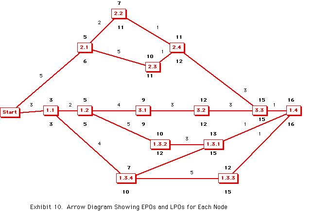 o By consulting a table of normal curve values, F values can be interpreted in terms of the probability of meeting the imposed schedule (Exhibit 12).